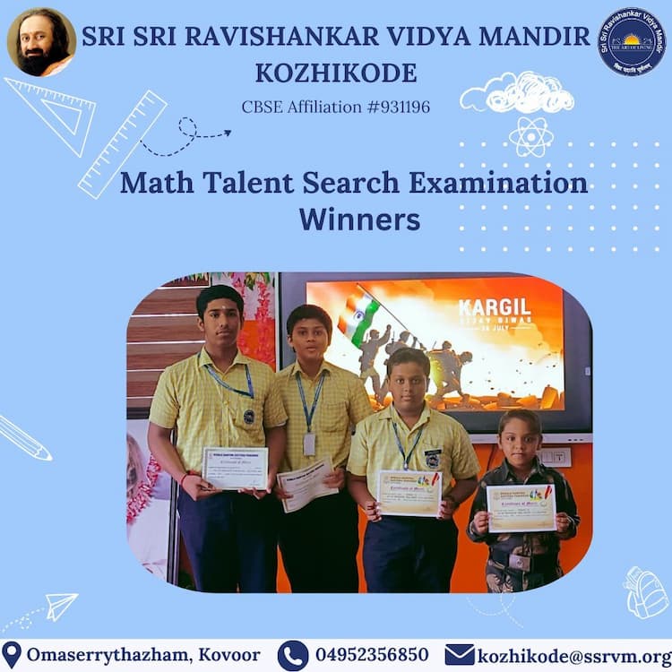 Our students Harigovind, Harinand, Adidev & Kalyani secured Merit certificates in Math Talent Search examination 2023 Conducted by Kerala Ganitha Shastra parishad.